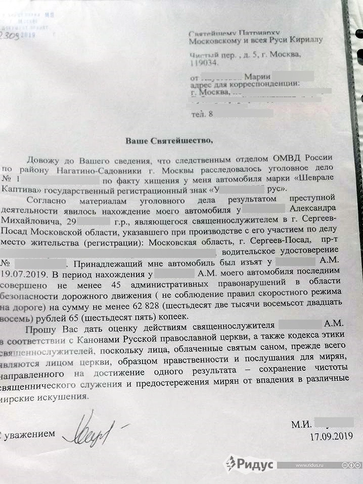 Московская художница Мария Х. рассказала о непростой борьбе с угонщиками ее автомобиля. Во время ее нахождения в больнице, у женщины угнали автомобиль. По ее словам, в результате угнанная машина оказалась у подмосковного священника, который «нагонял» штрафов более чем на 60 тысяч рублей. «Ридус» попытался разобраться в этой истории.