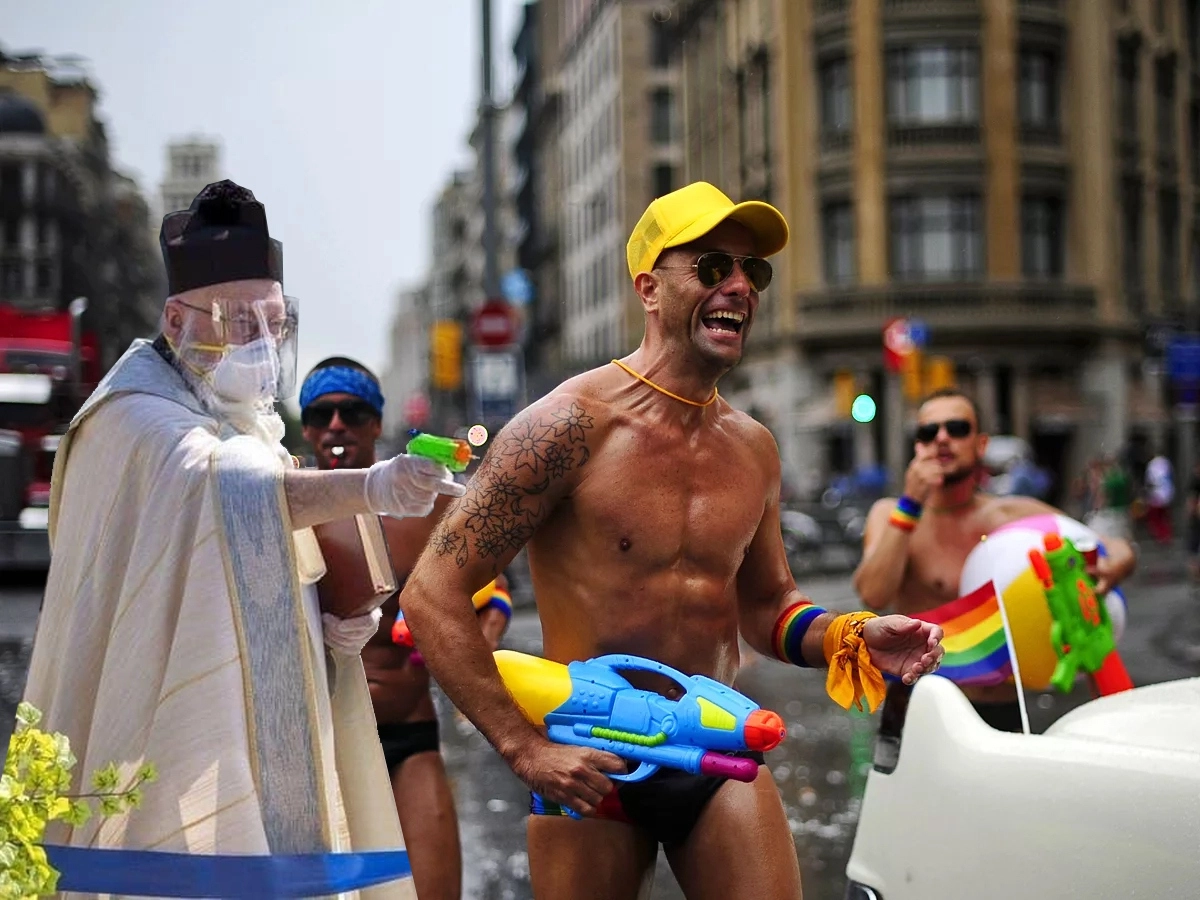 Священник с водяным пистолетом стал героем фотожаб