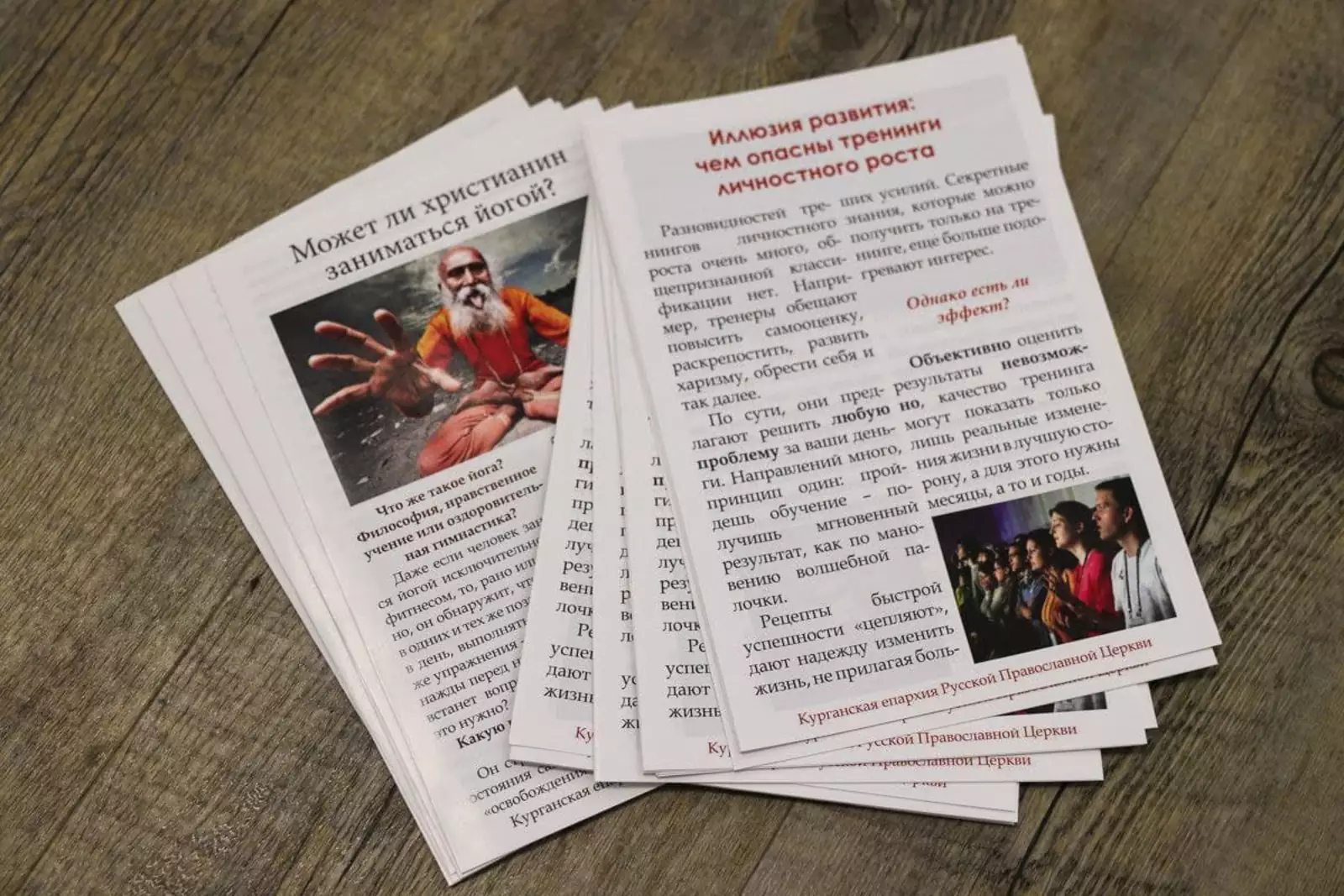 Курганская епархия РПЦ выпустила листовки о духовной опасности тренингов личностного роста и йоги. Их озаглавили «Чем опасны тренинги личностного роста?» и «Может ли христианин заниматься йогой?».
