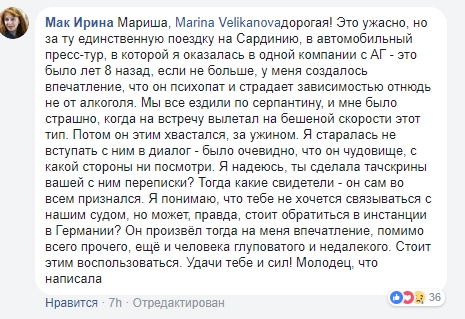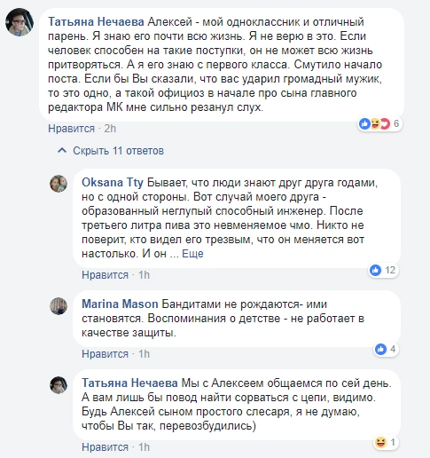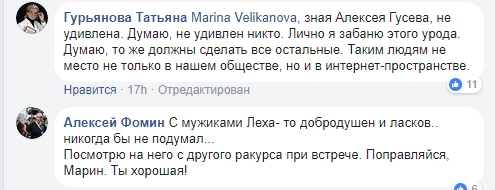 История Марины не оставила равнодушными пользователей соцсетей, среди которых немало тех, кто знает обоих участников конфликта. Многие пишут о том, что Гусев вел себя агрессивно по отношению к коллегам, но и они называют произошедшее дикостью.