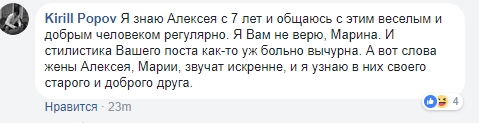 Некоторым людям нужен пиар. Все, что говорится в таких ситуациях людьми, должно делиться на десять. Я не собираюсь оправдываться. Пусть вопят в интернете, у нас сейчас это популярно. Я свою версию излагать не буду. Пусть они поорут — тролли диванные — и угомонятся через пару дней,ответил «Ридусу» Алексей Гусев.