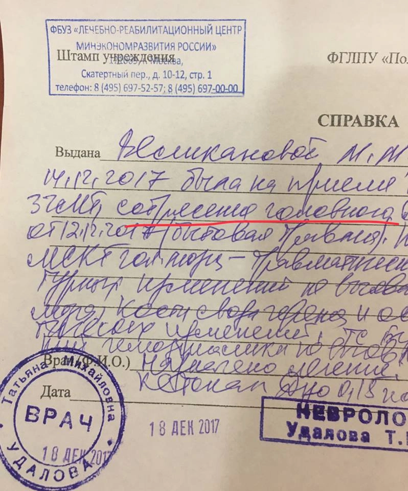 Медики зафиксировали у нее ушиб носа, гематому на бедре, сотрясение мозга, также у Великановой была разбита губа.