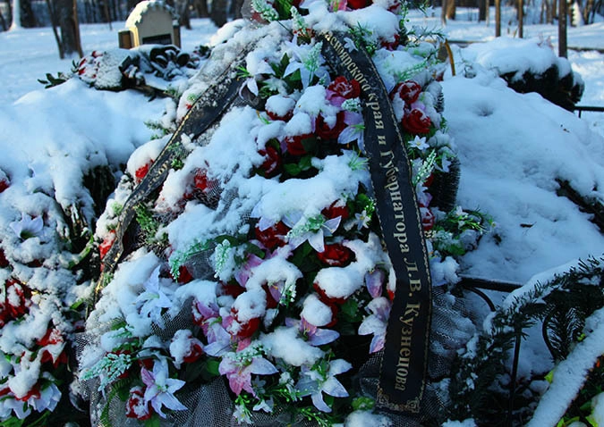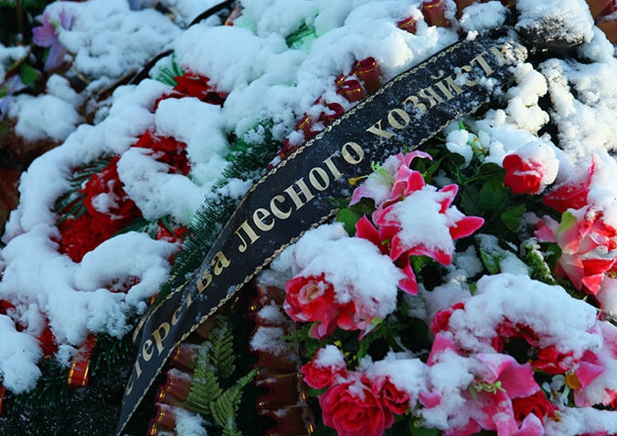 Говорят, что жены погибшего на похоронах не было, но есть венок, где на ленточке видно ее имя. Также есть венки от губернаторов других регионов и многих министерств Татарстана…