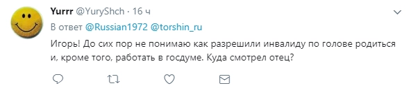 Сын лидера ЛДПР Владимира Жириновского Игорь Лебедев считает, что дети с инвалидностью не должны появляться на свет. Об этом он написал в Twitter под публикацией заместителя председателя Банка России Александра Торшина.