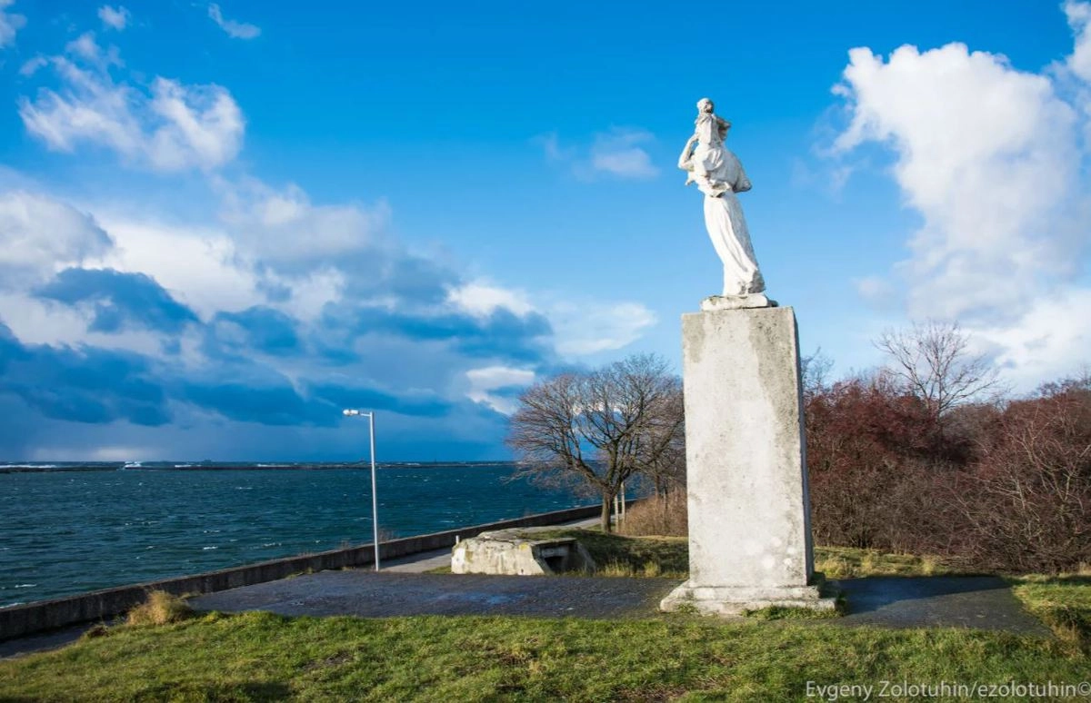 В городе есть набережная, на которой нет инфраструктуры, но есть памятник. Женщина с ребенком смотрит на море и радуются возвращающимся морякам, хотя так сразу и не скажешь.