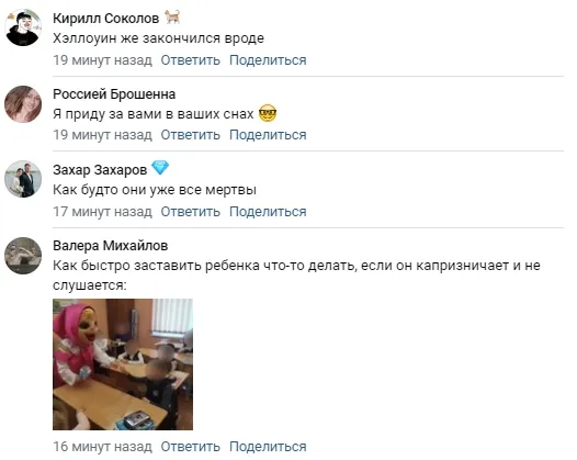 Особенно резкое отторжение внешний вид куклы вызвал у взрослых пользователей Сети, разродившихся целым валом шуток про жутковатую Машу. Особенно часто её сравнивали с классикой мировых ужасов.