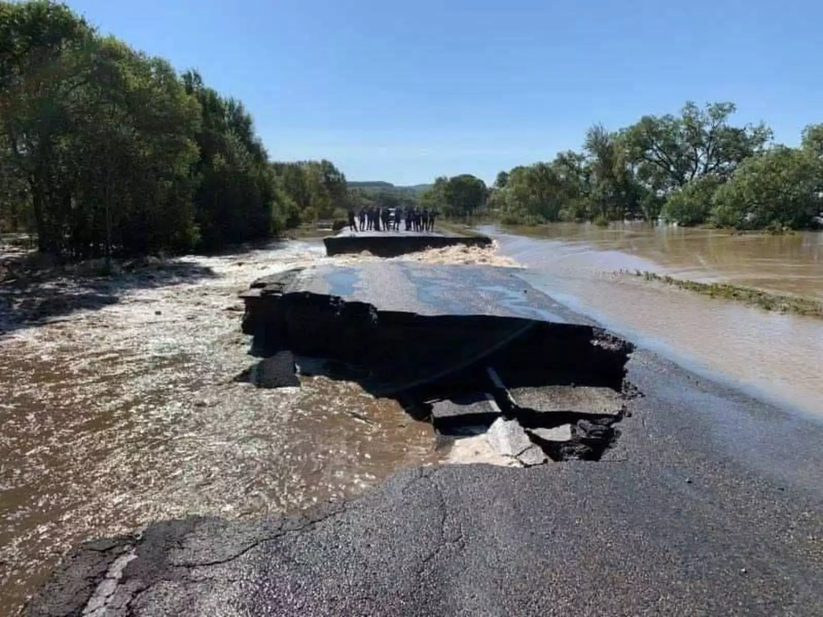 Сложнее всего в Приморье сейчас обстоят дела с дорогами. В Лазовском районе потоками воды разрушены 70 километров дорог из 100. Размыто дорожное полотно, смыты мосты, снесло водопропускные трубы. Сейчас там, где вода уже ушла, строители восстанавливают дорожное покрытие.