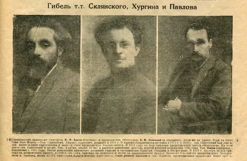 Прошло сто лет с тех пор, как руководитель советского представительства в США (Амторга) Исай Яковлевич Хургин и только что прибывший из СССР его куратор (бывший заместитель Троцкого) Эфраим Маркович Склянский выгребли теплым августовским вечером на байдарке подальше от берега озера Лонг Лейк и там утонули.