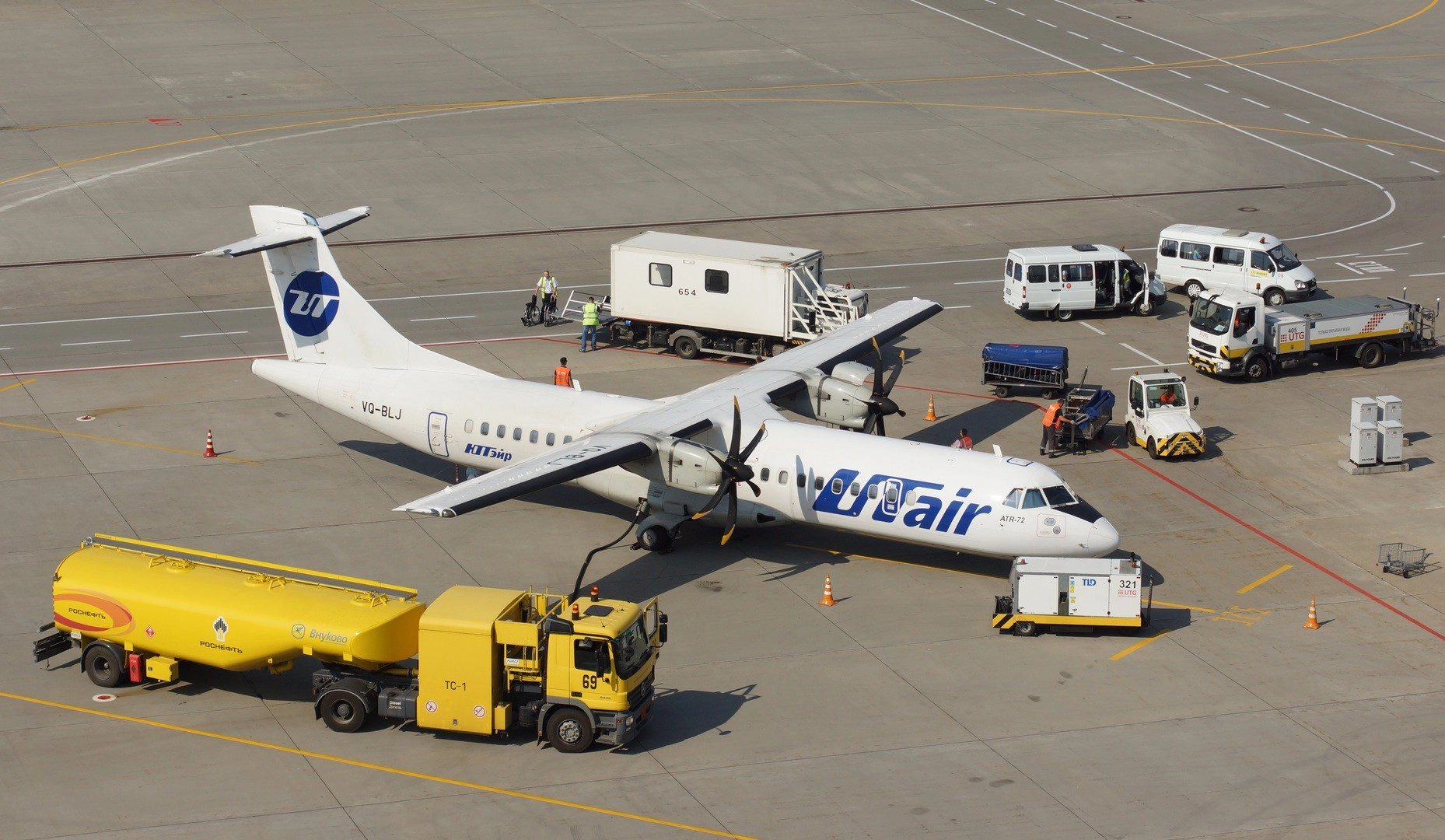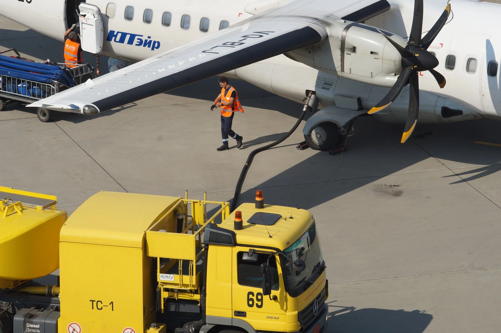 Для сокращения времени, которое самолет проводит на земле, все необходимые работы по его подготовке к следующему рейсу, включая заправку, загрузку и технический контроль, производятся одновременно.