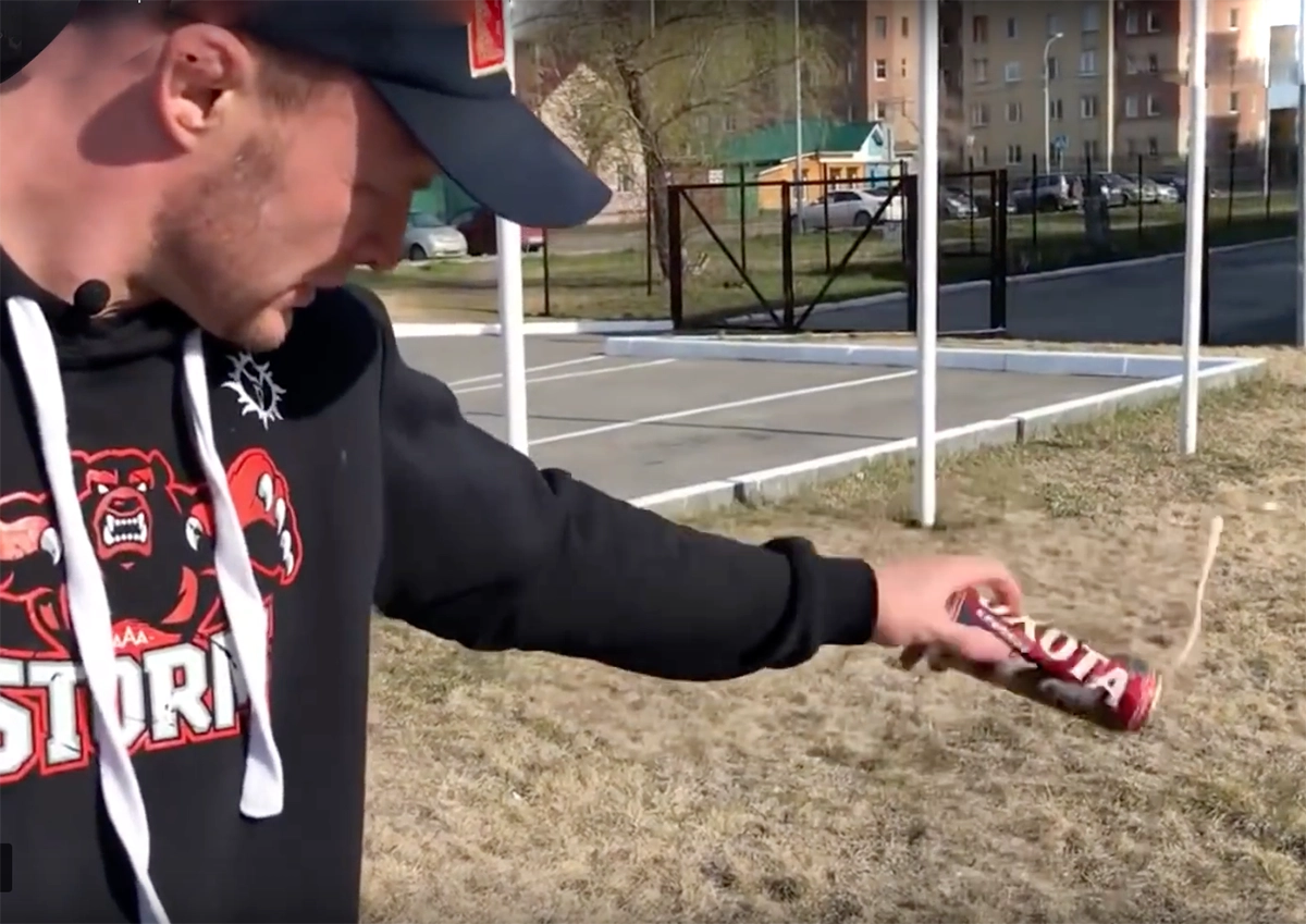 Боец смешанного стиля Шлеменко на камеру растоптал банку с алкоголем и выбросил ее в урну. По его словам, он купил это пиво в магазине, который находится рядом с его спортзалом.