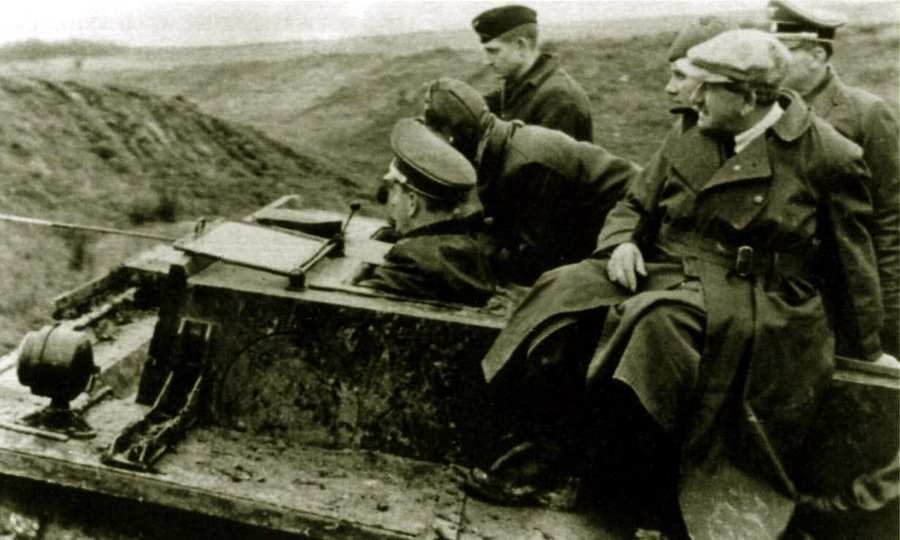 Фердинанд Порше и Альберт Шпеер в сопровождении свиты на бронекабриолете — прототипе Pz. Kpfw. II Ausf. L, 1942 год