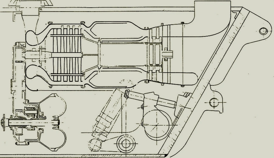 В конце войны Порше поручили исследовать установку газотурбинного двигателя (ГТД) на танки. В ходе оценки потенциально подходящих авиационных двигателей стало ясно, что потребуется разработать новые трансмиссии, а расход топлива по сравнению с поршневыми моторами возрастёт вдвое. С другой стороны, ГТД при небольшой массе выдавали очень высокую мощность и работали даже на низкокачественном топливе.
