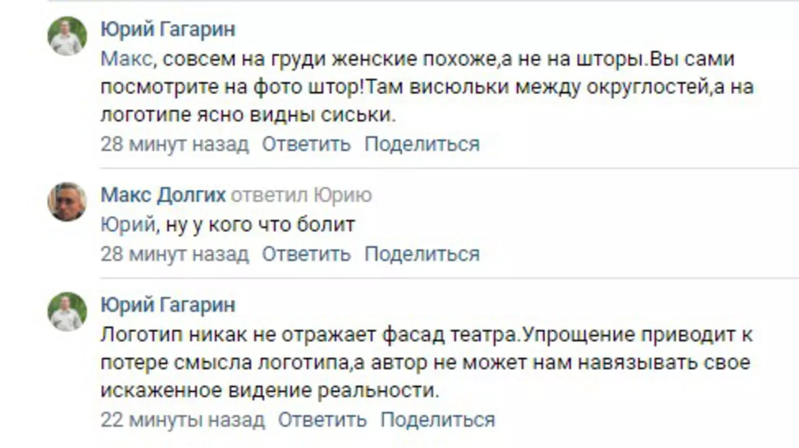 В ближайшее время изменения в лого точно не планируются. Сотрудники театра не находят подобных аллюзий, поэтому мы не видим причины резко менять логотип из-за того, что кто-то увидел в нём что-то нелицеприятное или непотребное, — заявили в театре изданию «Подъем».