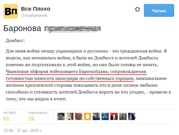 Снимок Бароновой поднял в Рунете еще одну важную тему: можно ли по страницам либерально настроенных деятелей в соцсетях достоверно определить причины провала протестных настроений в России: «Чтобы понять, почему либералы и прочие режимоборцы никогда не выиграют выборы и почему оранжевый проект обречен, совсем не надо заниматься скрупулезным анализом российской экономики, внутренней политики, узнавать какие-то „инсайды“