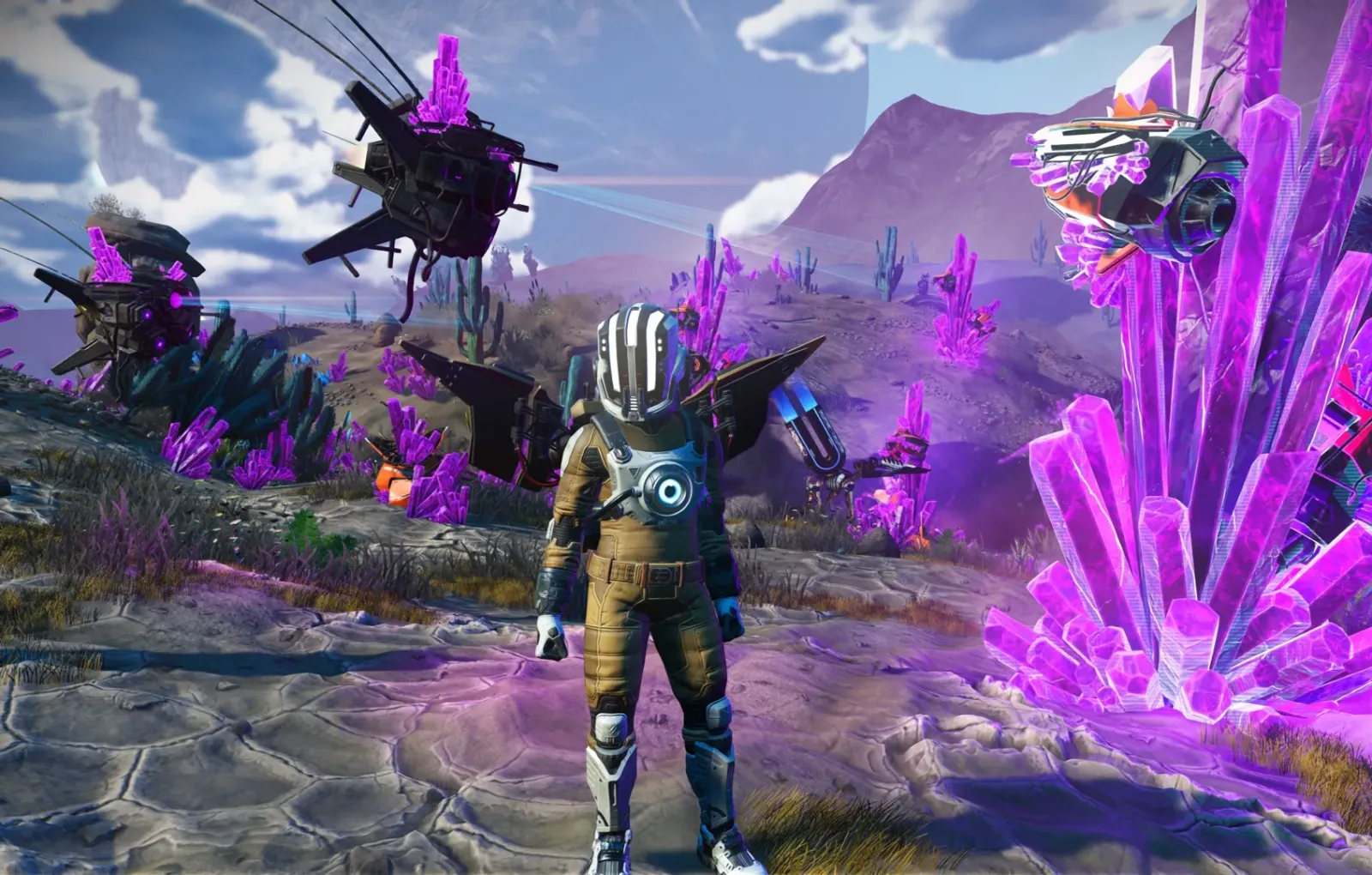 Если вы найдете испорченный мир, отличающийся ярко-фиолетовой погодой и топографией, ожидайте увидеть редкие кристаллы, разбитые корабли и незадачливых стражей, превратившихся в чудовищных противников. Hello Games также обещает «огромных паукообразных врагов и их маленьких крабоподобных детей», а если этого вам недостаточно, в игре появятся зловещие дроны со скрытым камуфляжем.