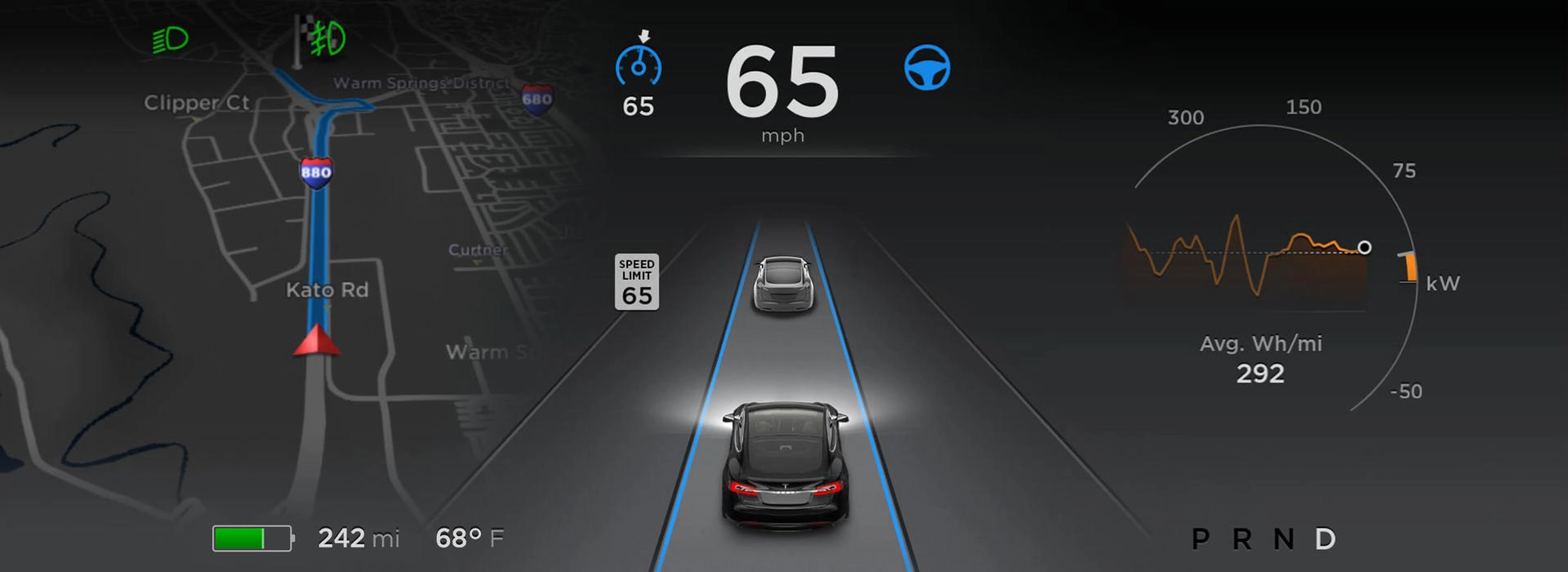Autopilot от Тesla позволяет водителю во время движения по шоссе передать управление машиной компьютеру.