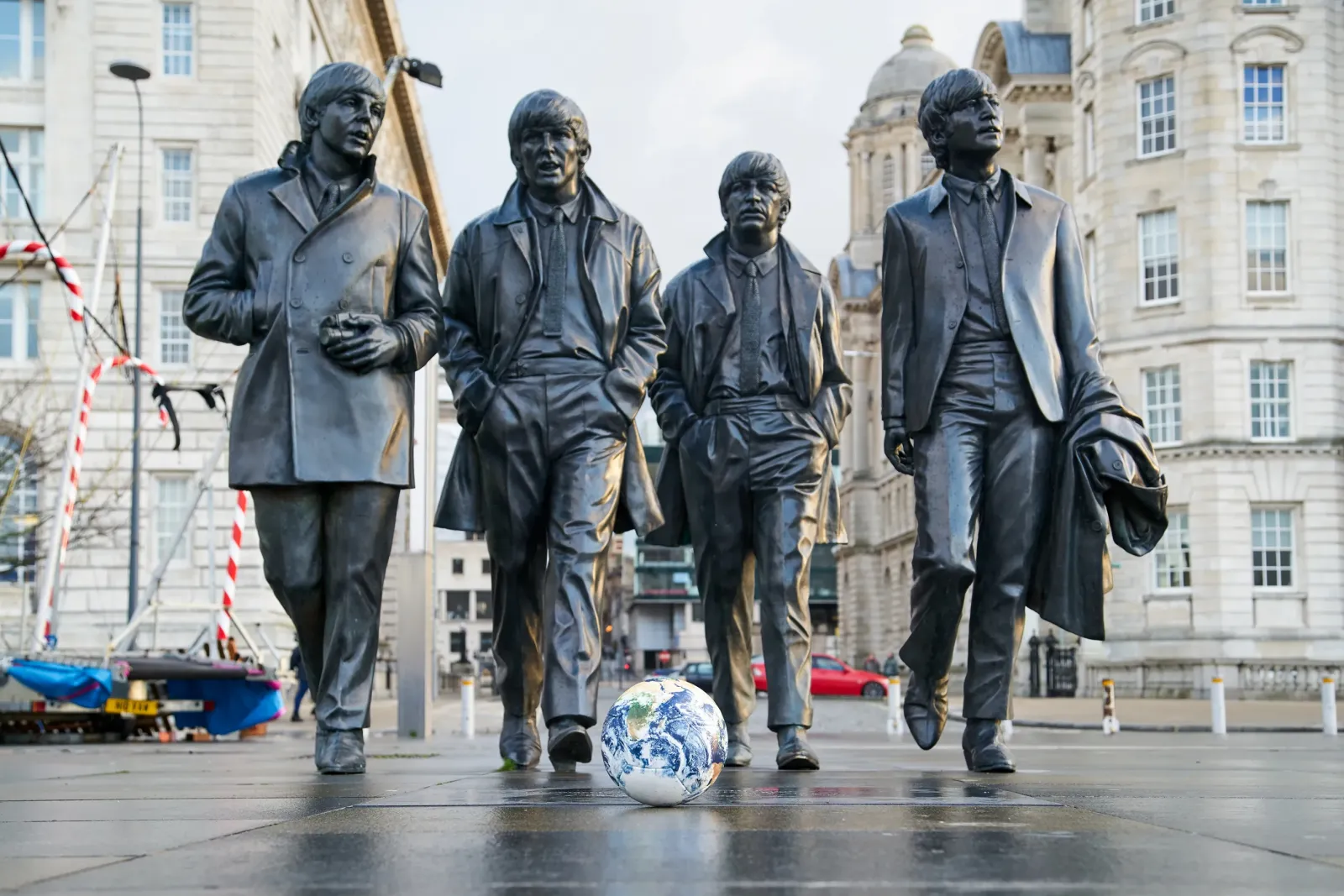 На памятник музыкантам The Beatles, установленный в центре Ливерпуля, сторонники Украины надели вышиванки, сообщает «Российская газета».
