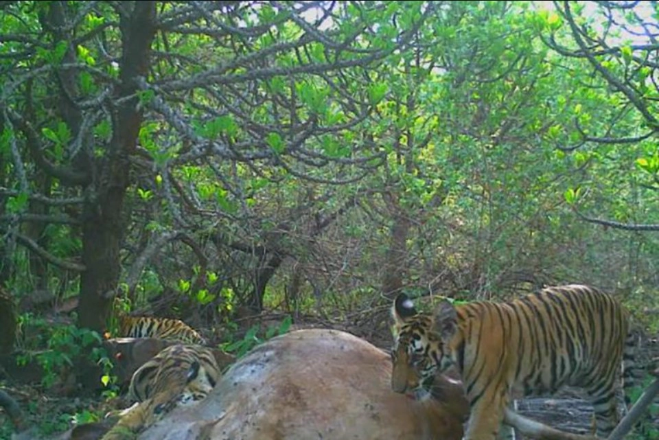 То, что они увидели, сильно их удивило. К ним стал регулярно приходить тигр-отец: он приносил детенышам свою добычу, играл с ними, следил за их безопасностью, а также учил их охотиться, поскольку 8-месячные тигрята не успели освоить этот навык до смерти своей матери, пишет Mongabay.