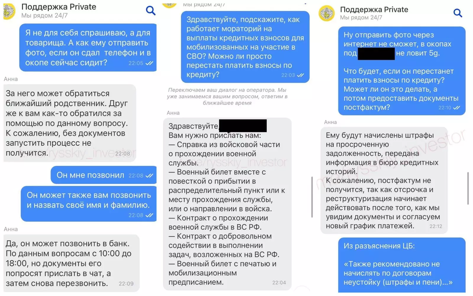 «Закон приняли недавно, поэтому в некоторых случаях обращения клиентов случаются ошибки со стороны сотрудников, мы оперативно их устраняем и параллельно работаем над оптимизацией процессов, упрощаем процедуры подтверждения и выдачи кредитных каникул, чтобы родственникам мобилизованных клиентов было проще получить отсрочку».