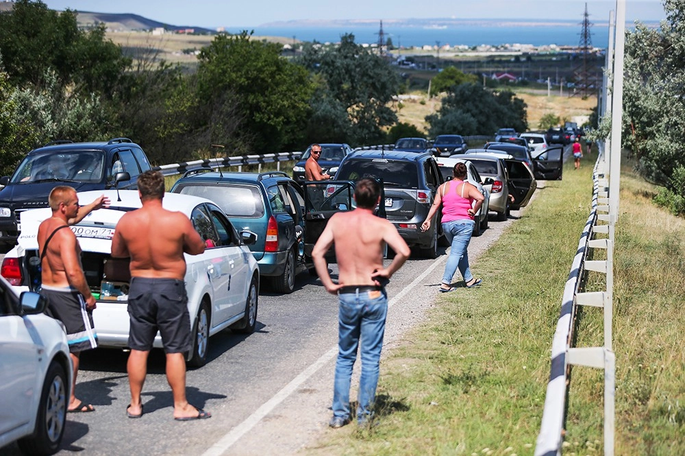 Пробка. Все, кто этим летом отправились в Крым на авто, независимо от региона, достатка и марки машины, были вынуждены томиться в пробке между Керчью и Феодосией. Слева заманчиво плещется Черное море, которое раньше называли Русским, а справа — мелкое и соленое Азовское.