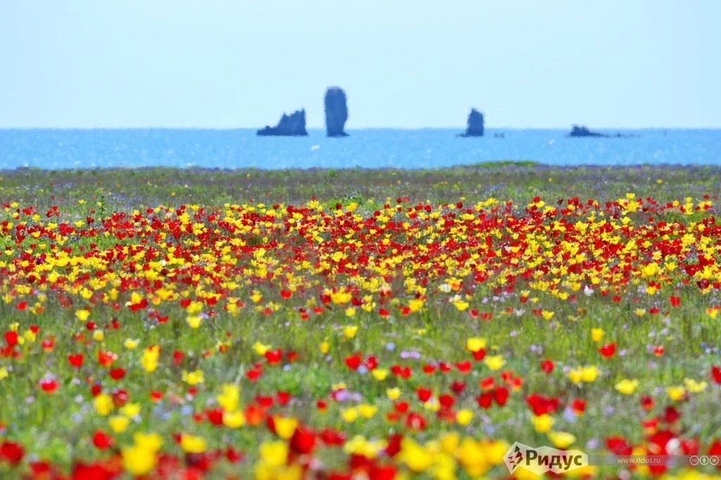 Хотя кому-то и такой пейзаж согреет душу. Особенно по весне, когда вся выжженная степь цветет дикими тюльпанами и превращается в райский ковер из цветов.