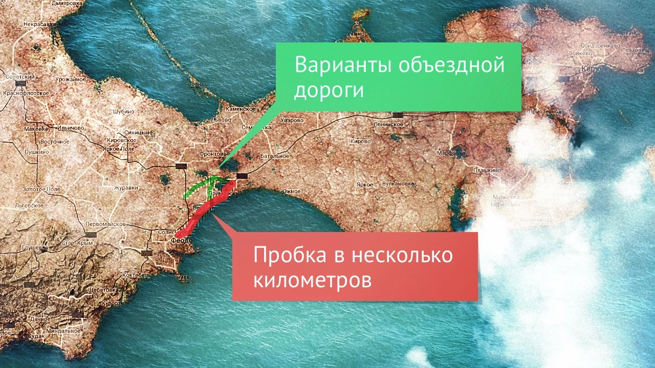 Весь недюжинный человеко-, грузо- и автопоток идет через Керчь. Неизвестно, насколько это хорошо для самой Керчи, но пробки и здесь, и на трассе до Феодосии могут переплюнуть даже московские. Их пик приходится на село Береговое, в котором от пляжа до столовой можно ехать километр за час.