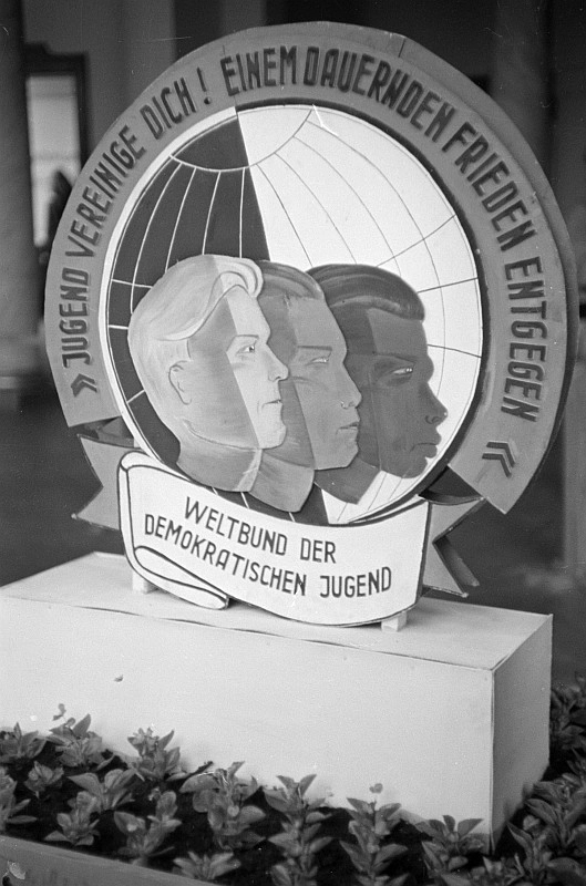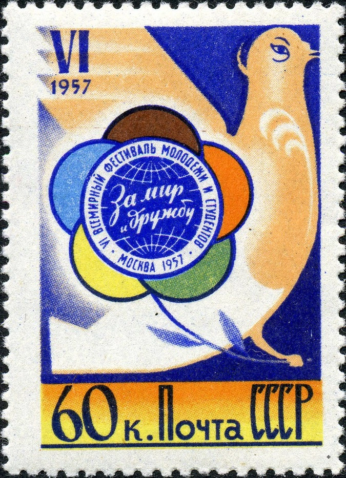 Девиз фестиваля 1957 года: "За мир и дружбу",