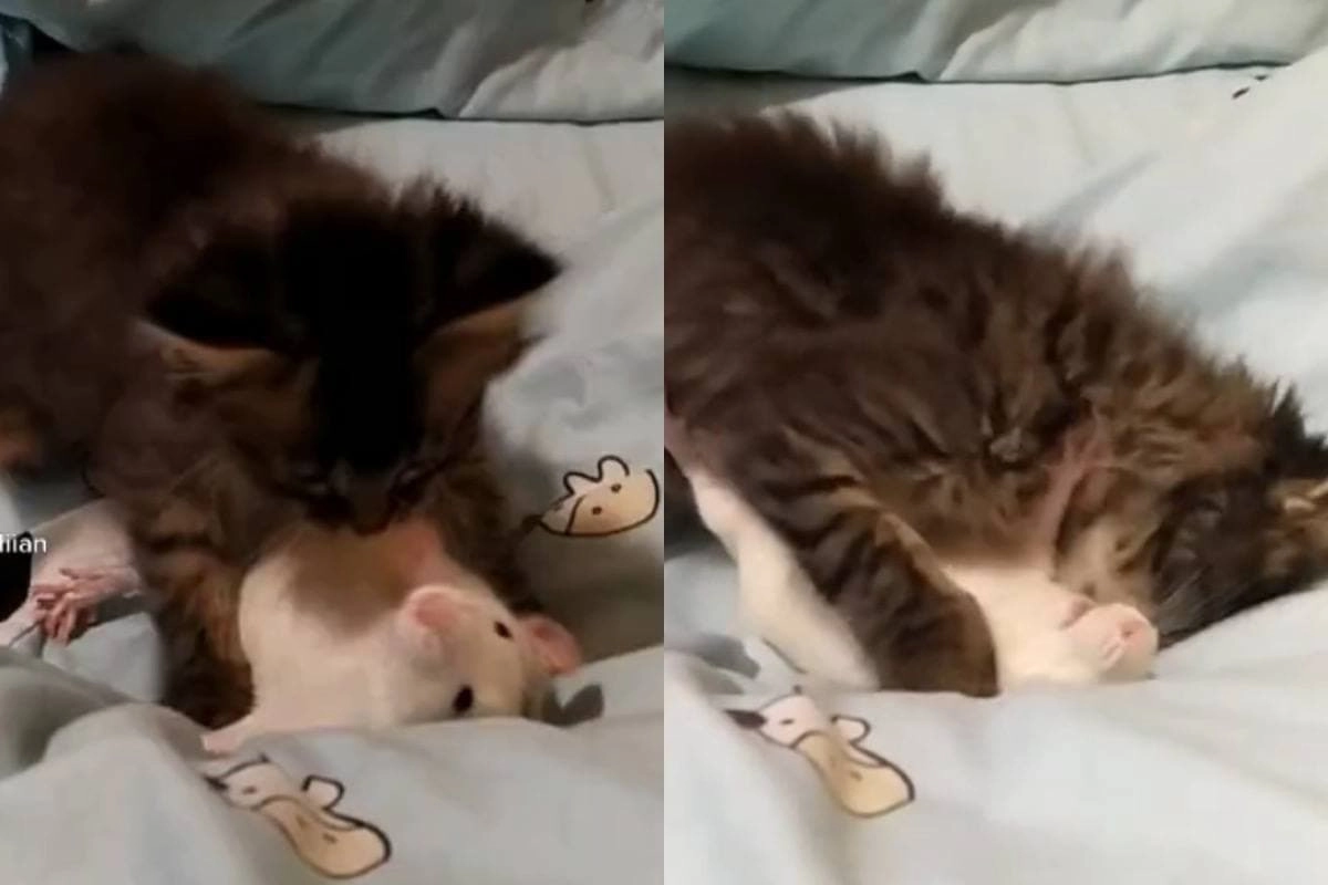 Ветеринар по имени Артур ведет в TikTok свой блог, в котором делится забавными роликами с участием своих пациентов. Свежее видео с участием крысы по кличке Кабася и котика Чикули стало невероятно вирусным, набрав более 4,6 миллиона просмотров и 450 тысяч лайков.