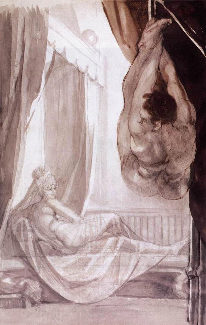 Иоганн Генрих Фюссли. «Брунгильда, наблюдающая за Гунтером, которого она привязала к потолку».