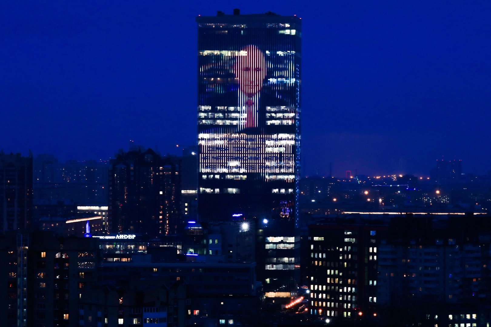 Акция «Спасибо врачам» на фасаде гостиницы «Космос» в Москве.