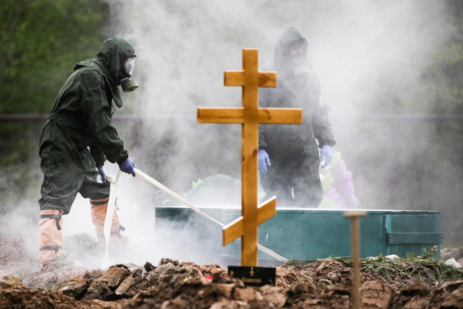 Похороны умерших после заражения коронавирусом на Бутовском кладбище в Москве.