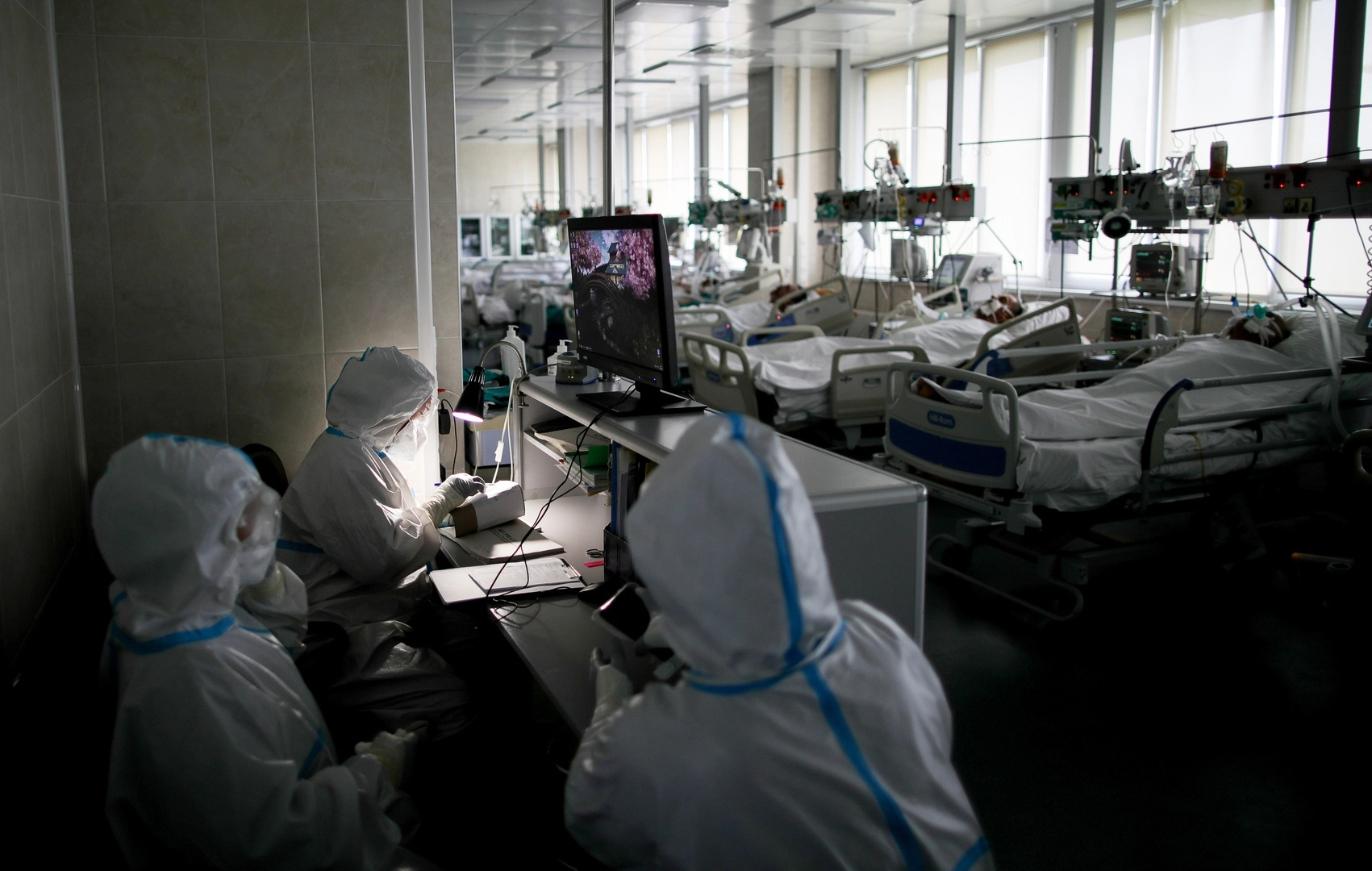 Госпиталь для пациентов с коронавирусом COVID-19 в ледовом комплексе «Крылатское».