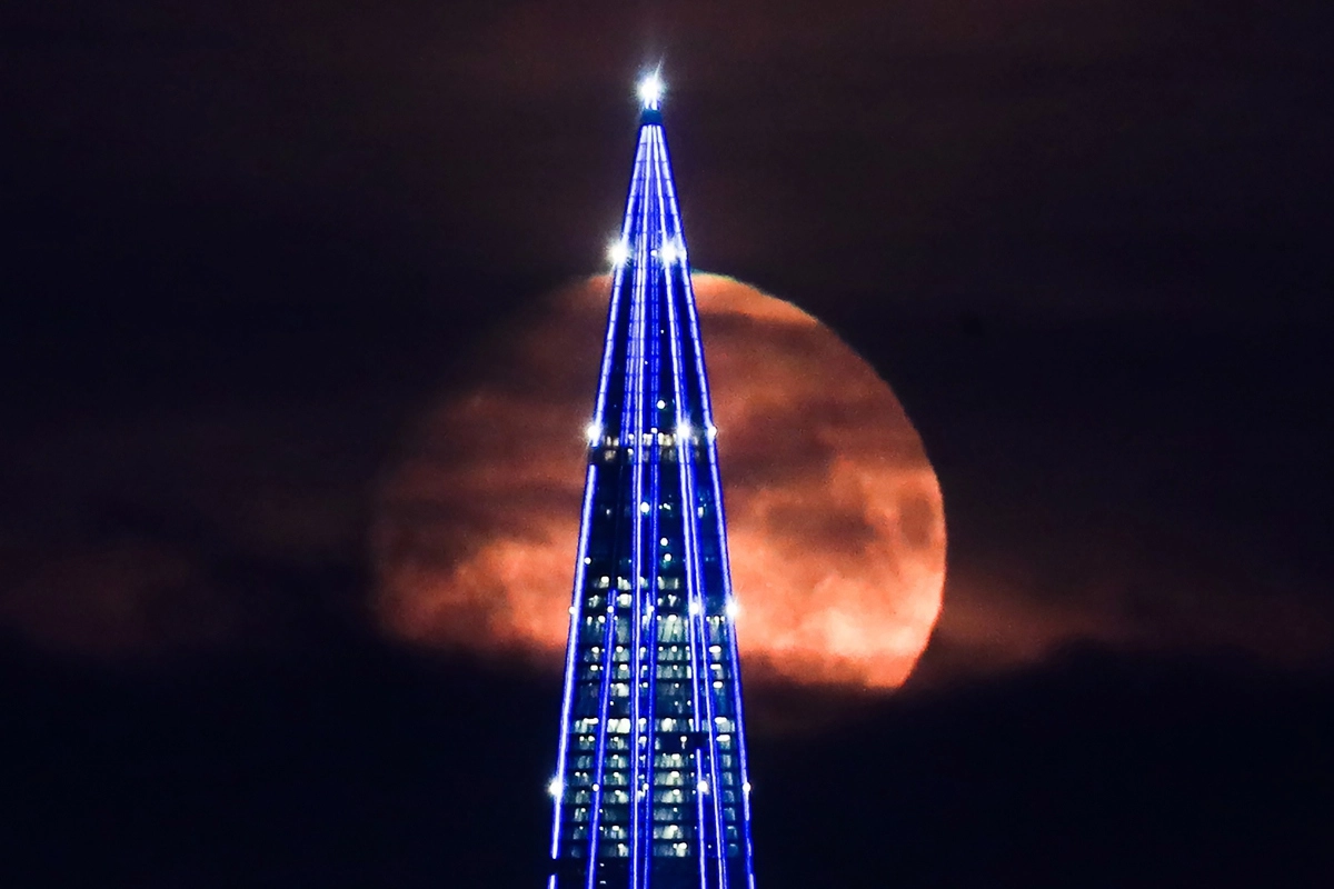 Полнолуние в Санкт-Петербурге. Вид на «Лахта Центр».© Петр Ковалев/ТАСС