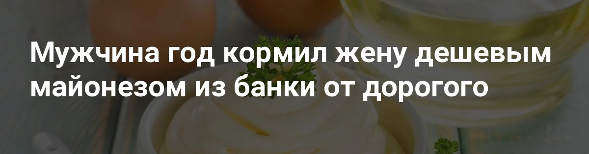 Мужчина год кормил жену дешевым майонезом из банки от дорогого