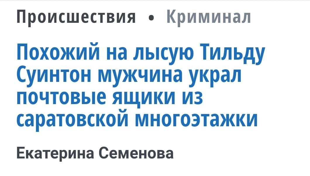 Похожий на лысую Тильду Суинтон мужчина украл почтовые ящики из саратовской многоэтажки