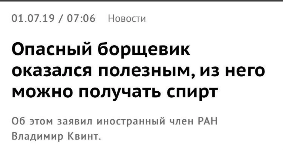 Опасный борщевик оказался полезным, из него можно получать спирт