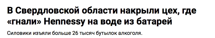 В Свердловской области накрыли цех, где «гнали» Hennessy на воде из батарей