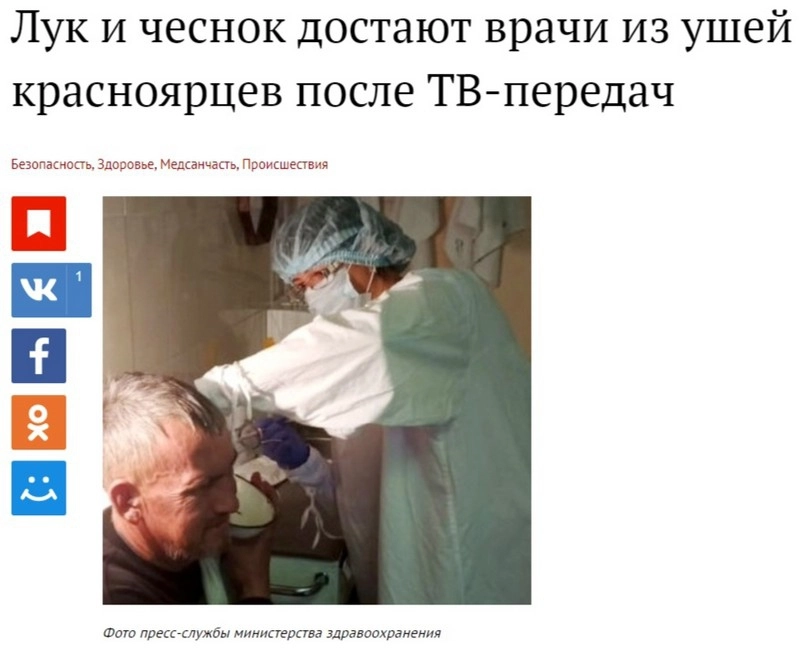 Лук и чеснок достают врачи из ушей красноярцев после ТВ-передач