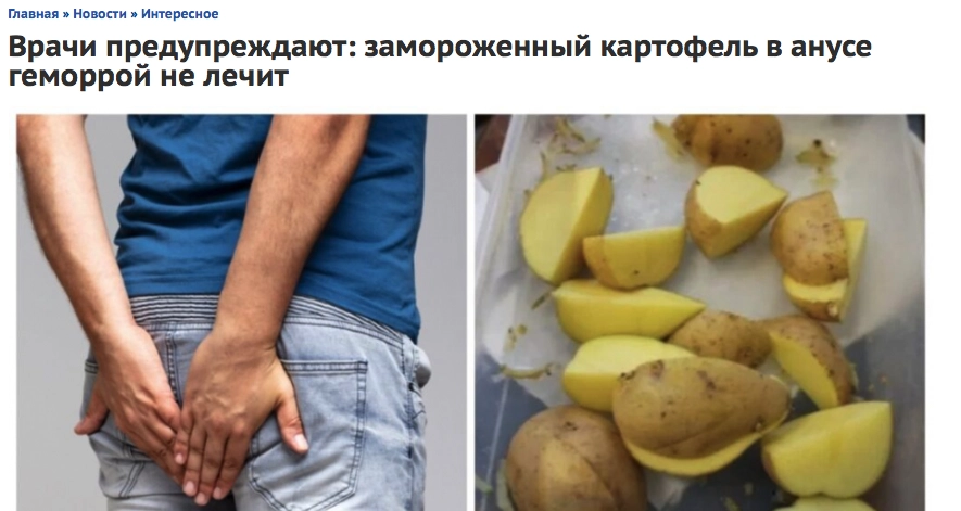 Врачи предупреждают: замороженный картофель в анусе геморрой не лечит