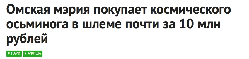 Омская мэрия покупает космического осьминога в шлеме почти за 10 млн рублей