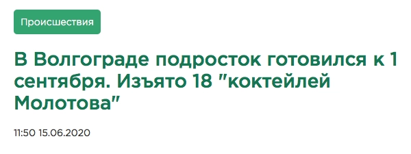 В Волгограде подросток готовился к 1 сентября. Изъято 18 «коктейлей Молотова»