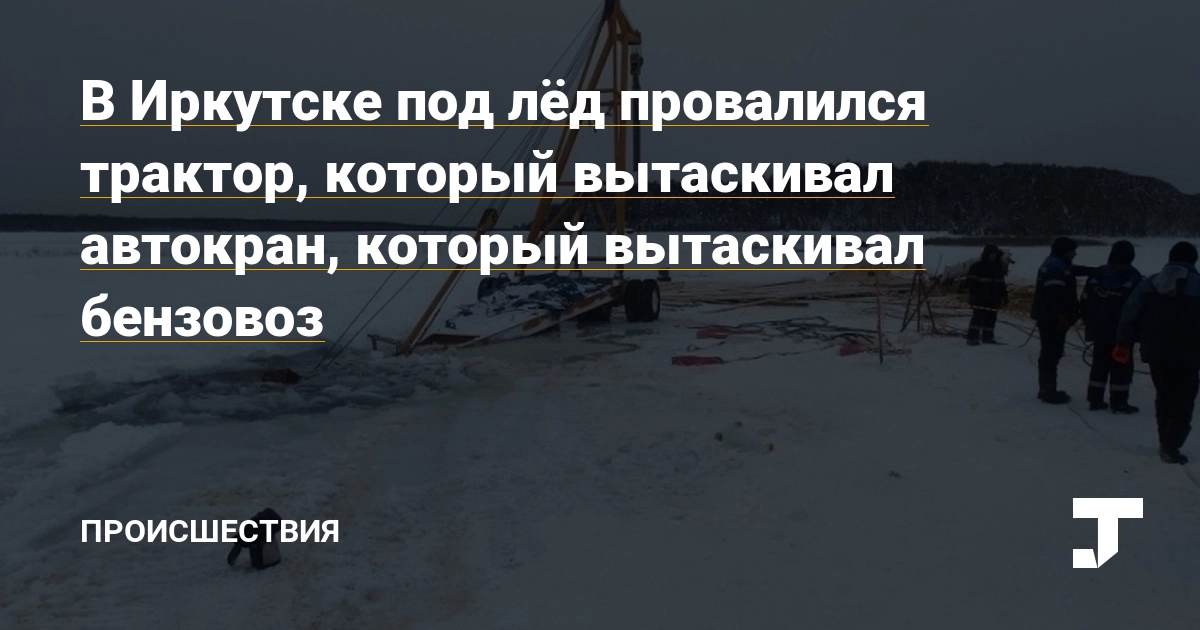 В Иркутске под лёд провалился трактор, который вытаскивал автокран, который вытаскивал бульдозер