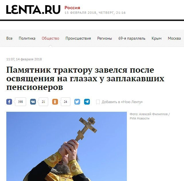 Памятник трактору завелся после освящения на глазах у заплакавших пенсионеров