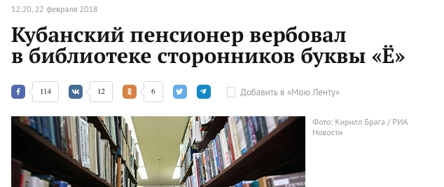 Кубанский пенсионер вербовал в библиотеке сторонников буквы «Ё»