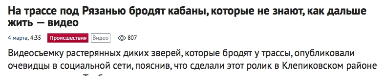На трассе под Рязанью бродят кабаны, которые не знают, как дальше жить