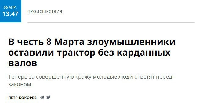 В честь 8 Марта злоумышленники оставили трактор без карданных валов