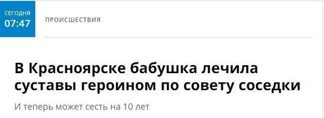 В Красноярске бабушка лечила суставы героином по совету соседки