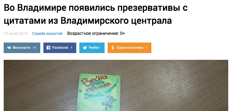Во Владимире появились презервативы с цитатами из Владимирского централа