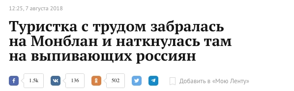 Туристка с трудом забралась на Монблан и наткнулась там на выпивающих россиян