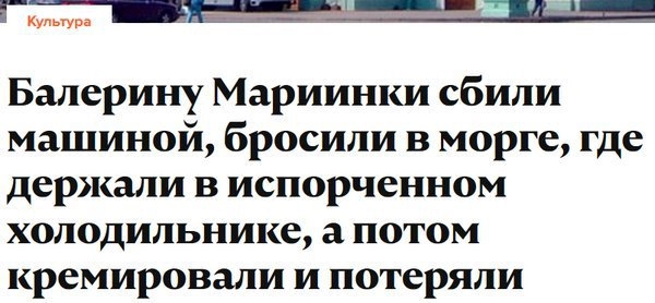 Балерину Мариинки сбили машиной, бросили в морге, где держали в испорченном холодильнике, а потом кремировали и потеряли